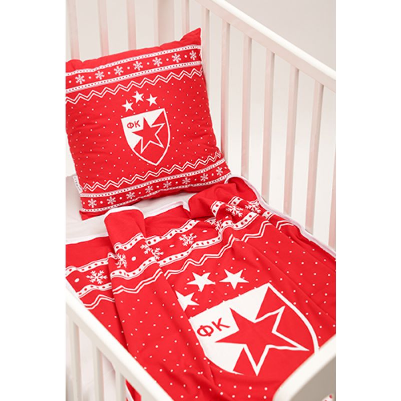 Прекривач памучни за бебе са Новогодишњим дезеном и грбом ФК Црвена Звезда.