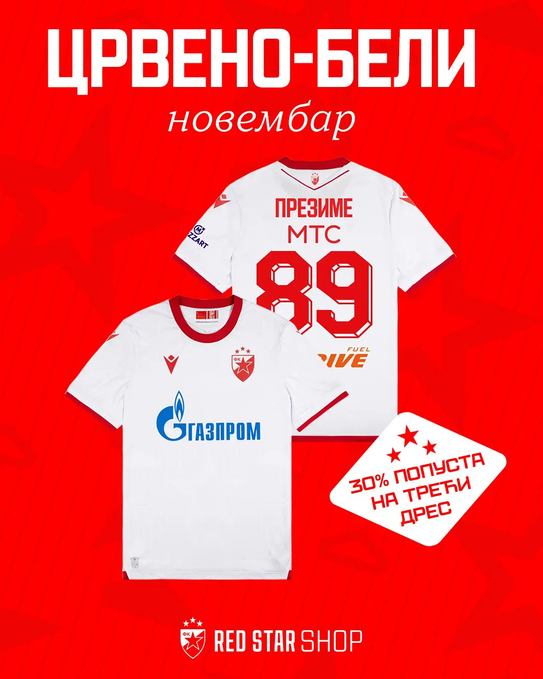 НОВА КОЛЕКЦИЈА ЈЕСЕН - ЗИМА НОВА КОЛЕКЦИЈА ЈЕСЕН - ЗИМА RED STAR SHOP НОВИ ПРОИЗВОДИ RED STAR SHOPМУШКА КОЛЕКЦИЈА RED STAR SHOPЖЕНСКА КОЛЕКЦИЈА RED STAR SHOPДЕЧИЈА КОЛЕКЦИЈА RED STAR SHOP СПЕЦИЈАЛНА ПОНУДА АКЦИЈАТРЕЋИ ДРЕС 25/26 RED STAR SHOPСУПЕР ЗВЕЗДАШ RED STAR SHOPПОЛАР RED STAR SHOP АКЦИЈА % -29% Одаберите опције Овај производ има више варијанти. Опције могу бити изабране на страници производа. Поло Дукс 4,490.00 рсд Оригинална цена је била: 4,490.00 рсд.3,190.00 рсдТренутна цена је: 3,190.00 рсд. -40% Додај у корпу Макрон шал плави 24/25 2,490.00 рсд Оригинална цена је била: 2,490.00 рсд.1,490.00 рсдТренутна цена је: 1,490.00 рсд. -58% Одаберите опције Овај производ има више варијанти. Опције могу бити изабране на страници производа. Макрон трећи дрес 24/25 3,790.00 рсд – 5,290.00 рсдРаспон цена: од 3,790.00 рсд до 5,290.00 рсд -55% Одаберите опције Овај производ има више варијанти. Опције могу бити изабране на страници производа. Макрон голмански домаћи дрес 24/25 8,490.00 рсд Оригинална цена је била: 8,490.00 рсд.3,790.00 рсдТренутна цена је: 3,790.00 рсд. -26% Одаберите опције Овај производ има више варијанти. Опције могу бити изабране на страници производа. Женски џемпер 4,290.00 рсд Оригинална цена је била: 4,290.00 рсд.3,190.00 рсдТренутна цена је: 3,190.00 рсд. -29% Одаберите опције Овај производ има више варијанти. Опције могу бити изабране на страници производа. Mакрон гостујући шортс 24/25 3,490.00 рсд Оригинална цена је била: 3,490.00 рсд.2,490.00 рсдТренутна цена је: 2,490.00 рсд. -38% Одаберите опције Овај производ има више варијанти. Опције могу бити изабране на страници производа. Женска поло мајица 3,190.00 рсд Оригинална цена је била: 3,190.00 рсд.1,990.00 рсдТренутна цена је: 1,990.00 рсд. -42% Одаберите опције Овај производ има више варијанти. Опције могу бити изабране на страници производа. Дукс-Звезда 5,190.00 рсд Оригинална цена је била: 5,190.00 рсд.2,990.00 рсдТренутна цена је: 2,990.00 рсд. -38% Одаберите опције Овај производ има више варијанти. Опције могу бити изабране на страници производа. Mакрон трећи шортс 24/25 3,990.00 рсд Оригинална цена је била: 3,990.00 рсд.2,490.00 рсдТренутна цена је: 2,490.00 рсд. -48% Одаберите опције Овај производ има више варијанти. Опције могу бити изабране на страници производа. Дукс ЦЗ 4,790.00 рсд Оригинална цена је била: 4,790.00 рсд.2,490.00 рсдТренутна цена је: 2,490.00 рсд. -42% Одаберите опције Овај производ има више варијанти. Опције могу бити изабране на страници производа. Дукс-Звезда-Београд 5,190.00 рсд Оригинална цена је била: 5,190.00 рсд.2,990.00 рсдТренутна цена је: 2,990.00 рсд. -42% Одаберите опције Овај производ има више варијанти. Опције могу бити изабране на страници производа. Женска тренерка горњи део 5,990.00 рсд Оригинална цена је била: 5,990.00 рсд.3,490.00 рсдТренутна цена је: 3,490.00 рсд. -31%Деца Одаберите опције Овај производ има више варијанти. Опције могу бити изабране на страници производа. Дечија тренерка горњи део 4,590.00 рсд Оригинална цена је била: 4,590.00 рсд.3,190.00 рсдТренутна цена је: 3,190.00 рсд. -29% Одаберите опције Овај производ има више варијанти. Опције могу бити изабране на страници производа. Поло Дукс 4,490.00 рсд Оригинална цена је била: 4,490.00 рсд.3,190.00 рсдТренутна цена је: 3,190.00 рсд. -29% Одаберите опције Овај производ има више варијанти. Опције могу бити изабране на страници производа. Mакрон голмански шорц 24/25 3,490.00 рсд Оригинална цена је била: 3,490.00 рсд.2,490.00 рсдТренутна цена је: 2,490.00 рсд. -37% Одаберите опције Овај производ има више варијанти. Опције могу бити изабране на страници производа. Поло Мајица ФКЦЗ 3,490.00 рсд Оригинал